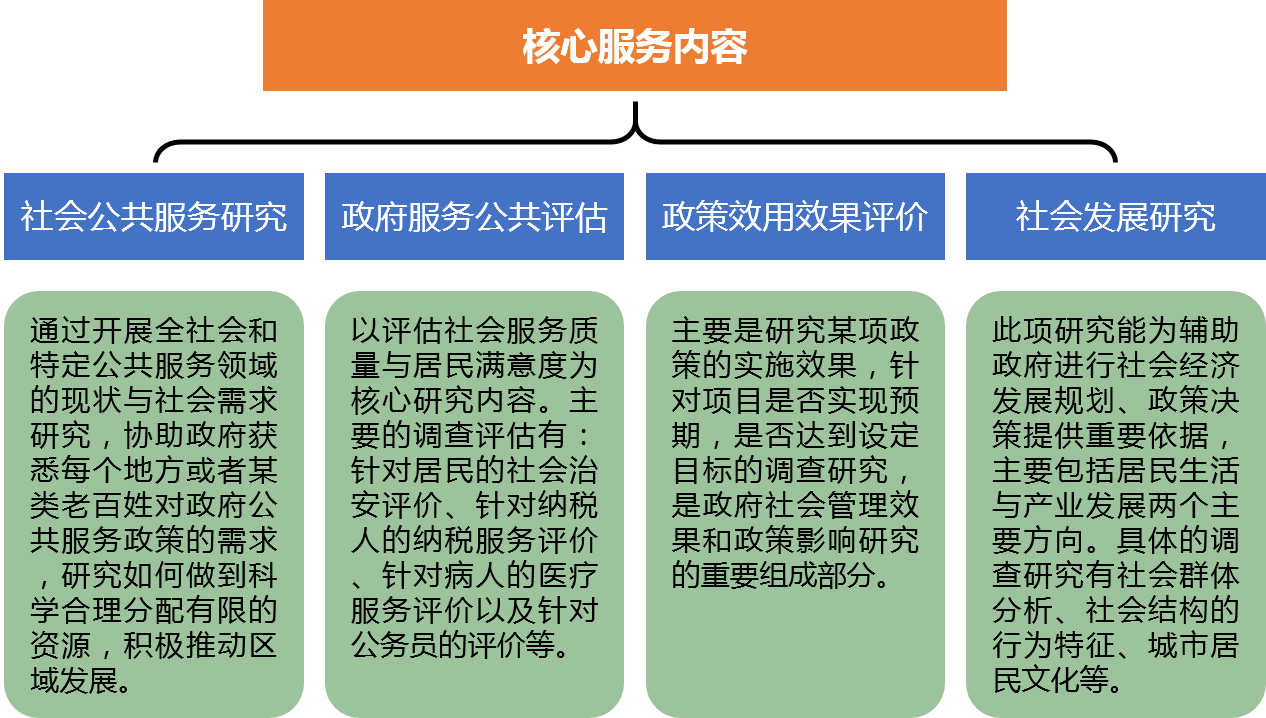 目前我國各級政府在追求發(fā)展效率的同時,也在積極推動和創(chuàng)建和諧社會,如何掌握社會需求,提供合理服務,降低社會公共事務成本,取得工作好評對于決策和執(zhí)行層都非常重要。另外如何科學、合理、客觀地由社會對工作做出真實評估,對于總結特點、發(fā)揚優(yōu)勢、彌補不足更為重要。華夏經(jīng)緯在政府/協(xié)會等領域擁有豐富的資料、最新的政府統(tǒng)計信息及相關研究經(jīng)驗,并受到了各級政府和職能部門的充分肯定。