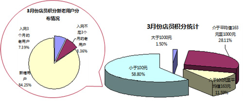 從圖可發(fā)現(xiàn),實(shí)體網(wǎng)點(diǎn)1千多家,3月份獲得酬金的只有465家,未獲積分酬金的網(wǎng)點(diǎn)數(shù)量不少。在有積分酬金的網(wǎng)點(diǎn)中,約70%的網(wǎng)點(diǎn)增值業(yè)務(wù)傭金低于平均水平163元。而酬金獲取多的主要集中在少數(shù)幾個(gè)網(wǎng)點(diǎn)。表明:增值業(yè)務(wù)開展量主要集中在少數(shù)網(wǎng)點(diǎn),遠(yuǎn)未形成渠道的整體能力。